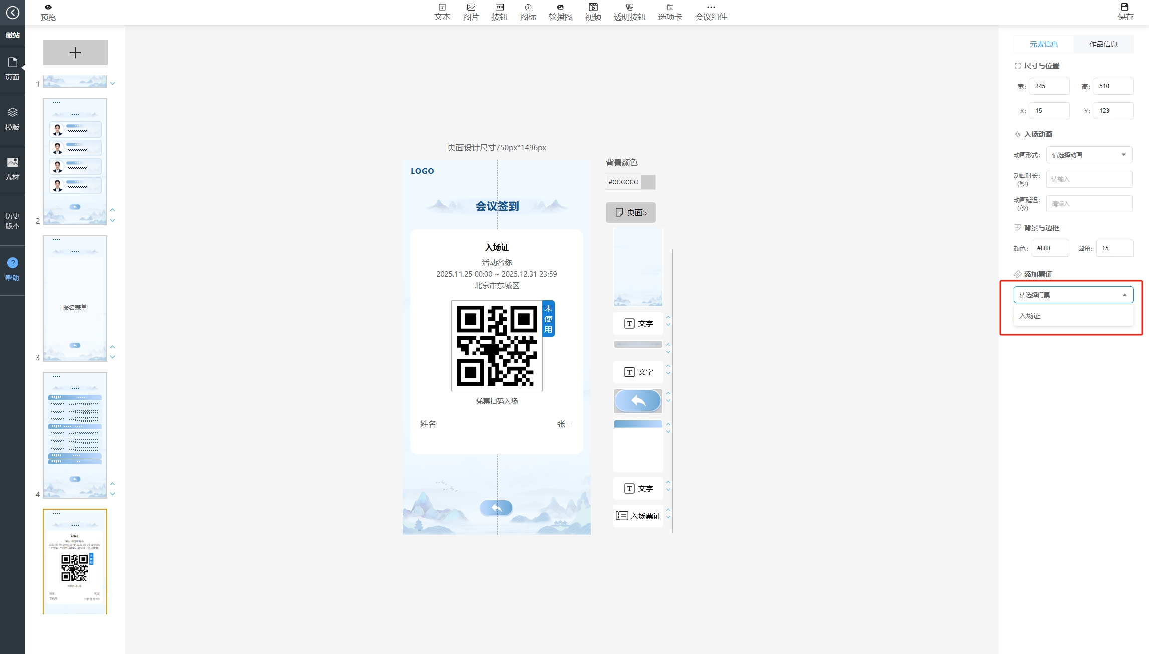 4、如果活动中有多个票证,想分开在不同页面显示,可以选择对应的票证分别添加